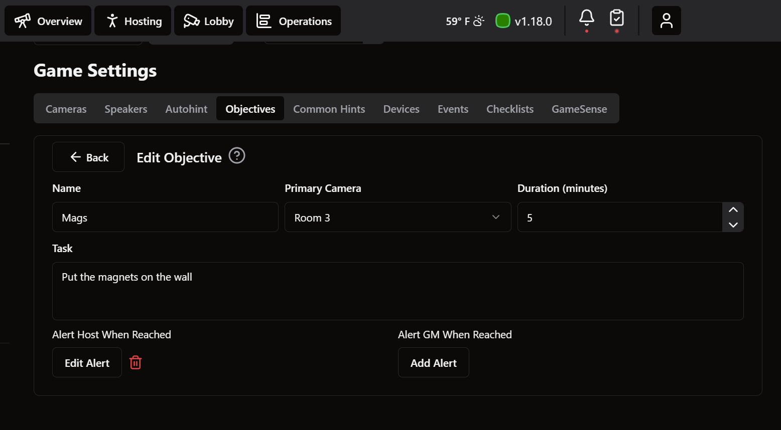Added customizable host and/or gamemaster alerts when an objective is reached