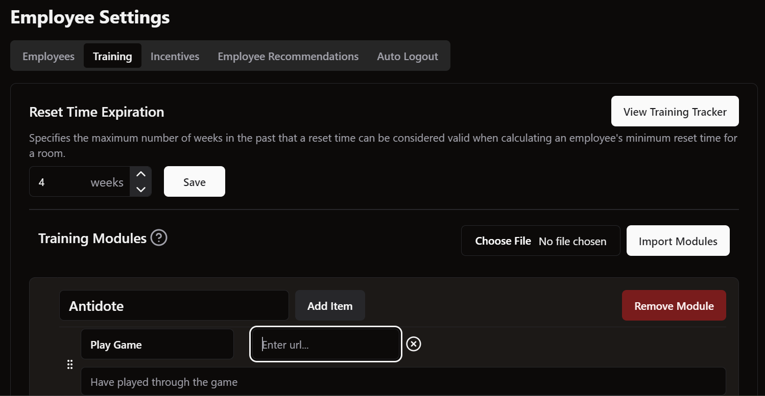 Training items can now have URLs attached to them that link to external resources (videos, TalentLMS, etc)