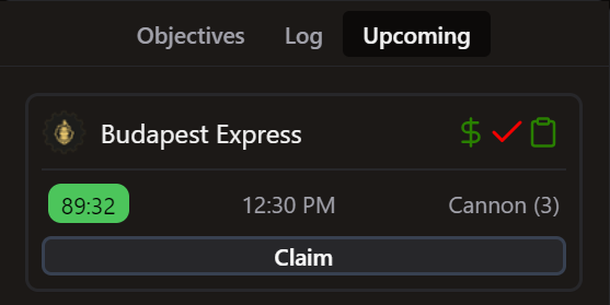 In the column with objectives, there is a new tab called “Upcoming.” Clicking on Upcoming will show the queue of games scheduled for that room and allow a GM to claim them