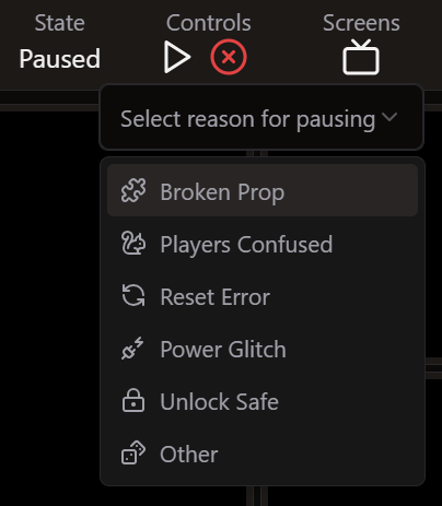 The selected pause reason will be visible in Overview, Games Extended metrics, and Game Forensics for that session